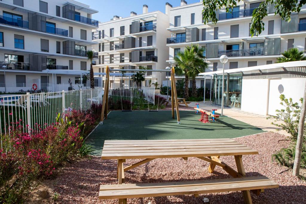 Within the Marina Real III community, you can enjoy a range of facilities that make your stay easy and enjoyable. The year-round outdoor swimming pool is perfect for a refreshing dip, and the fitness centre, gym and lift access add to your everyday convenience. There’s also a shared kitchen, picnic area, outdoor seating zone, playground and a games room. Free WiFi and air-conditioning keep you comfortable indoors, and a fully equipped kitchen lets you prepare meals whenever you prefer to stay in.